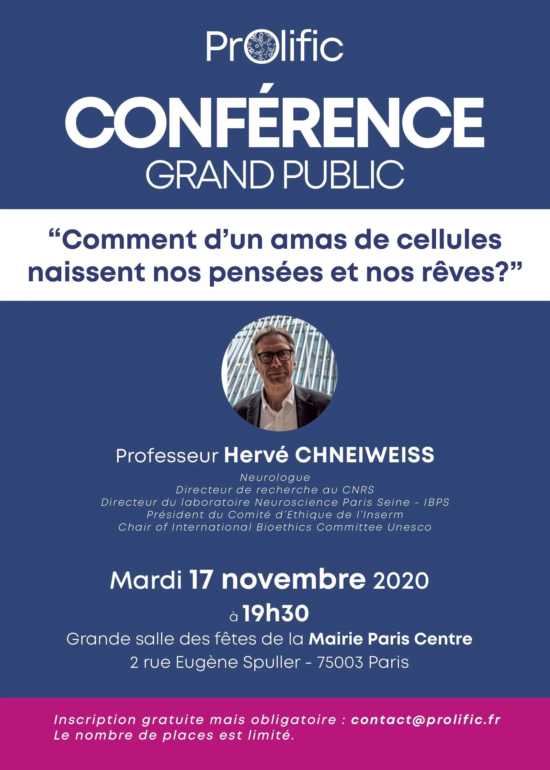 Nous accueillerons le Professeur Hervé CHNEIWEISS (médecin neurologue, directeur du laboratoire Neurosciences Paris Seine, président du comité d’éthique de l’INSERM)