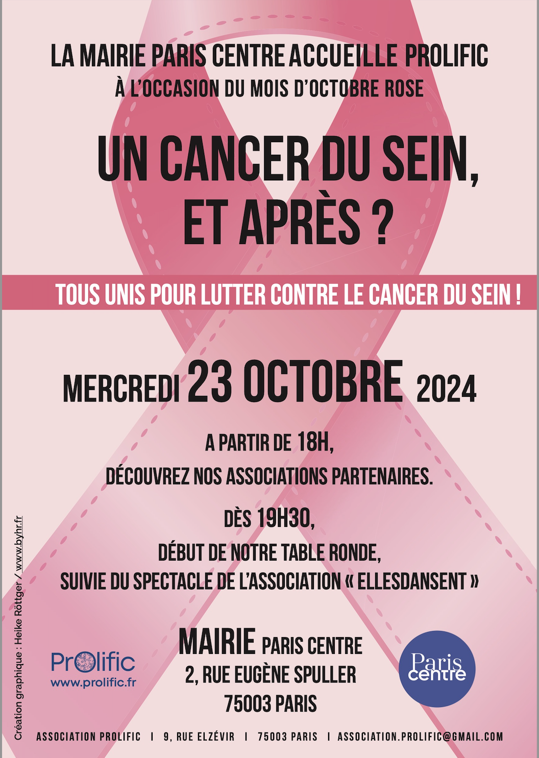15 Octobre. Soirée octobre rose à la Mairie du 3e. Table ronde et stands d’association pour la lutte contre le cancer du sein. + Livret